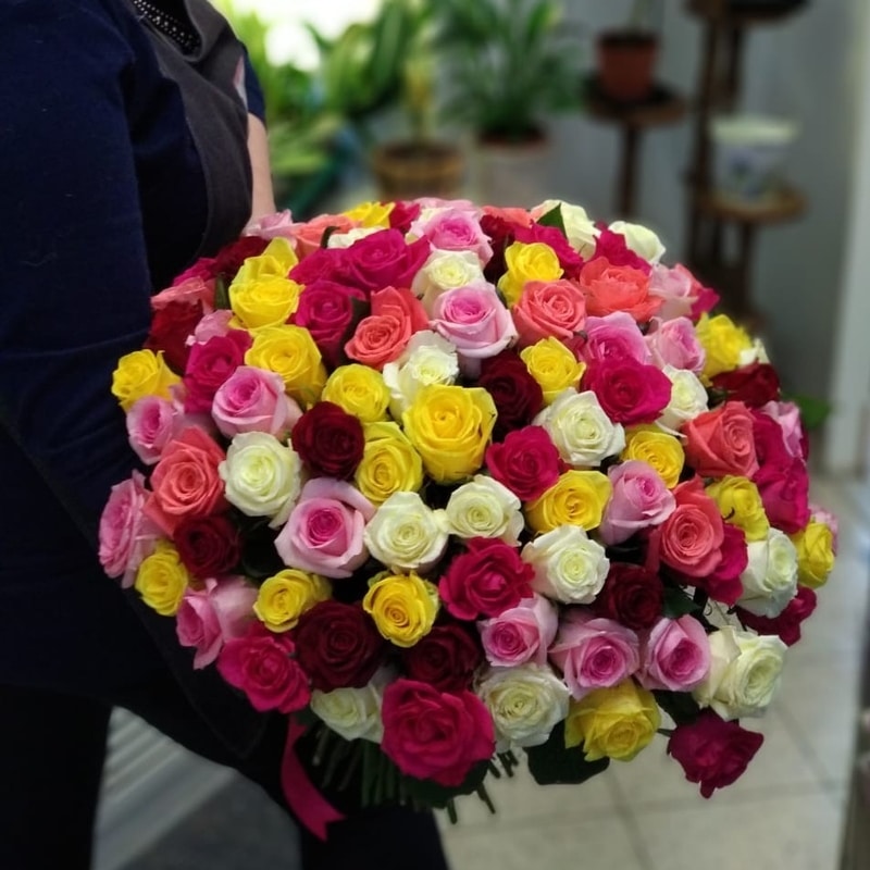 Яркий букет из 101 российской ароматной розы, точно сможет порадовать своего получателя!
